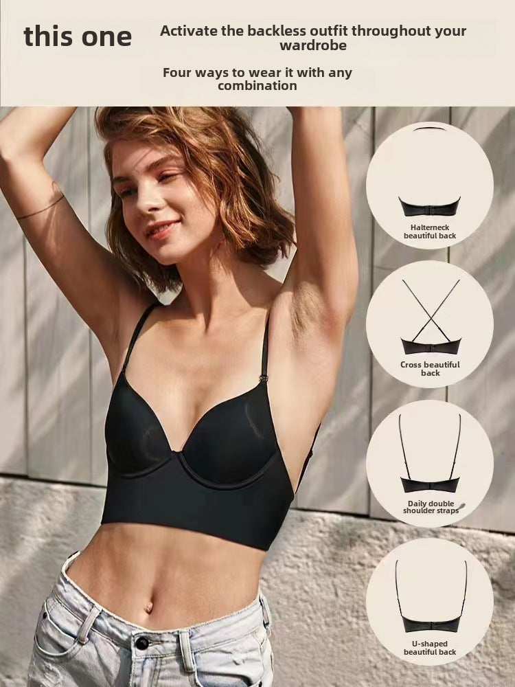 Experience the perfect fusion of allure and comfort with our deep back cut-out bra, designed to enhance your natural curves while keeping you effortlessly comfortable.